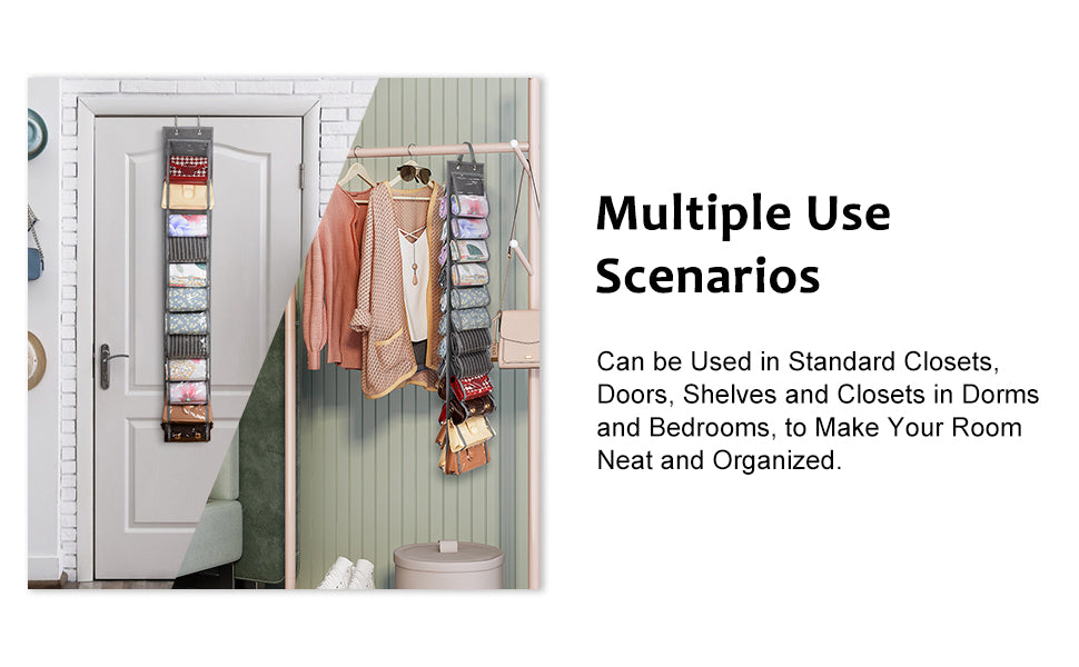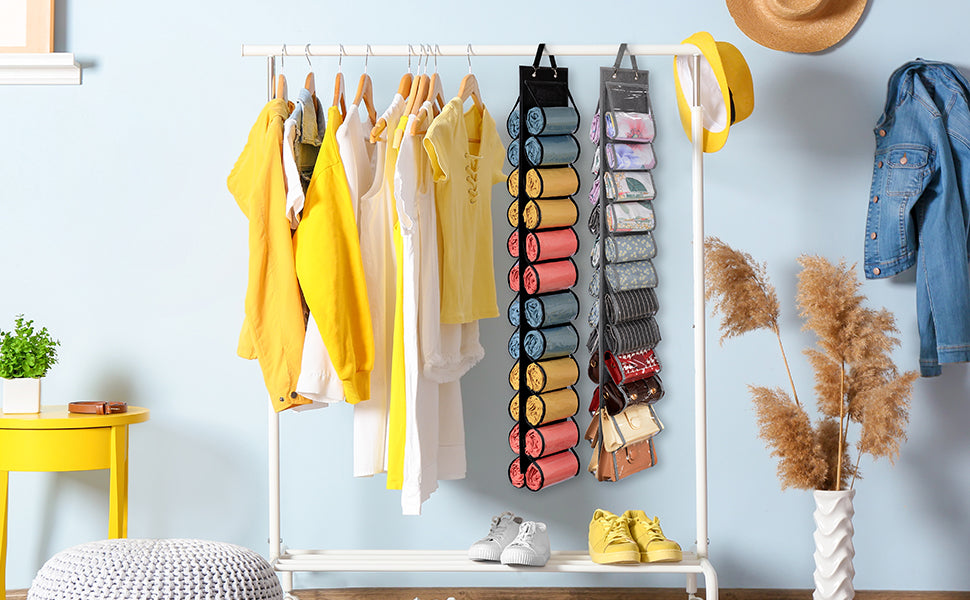 - Total 24-pocket hanging organizer in front and back, easily creating storage space and making your closet clutter free; conveniently keep your clothes and other items like glasses or pouch neat and organized